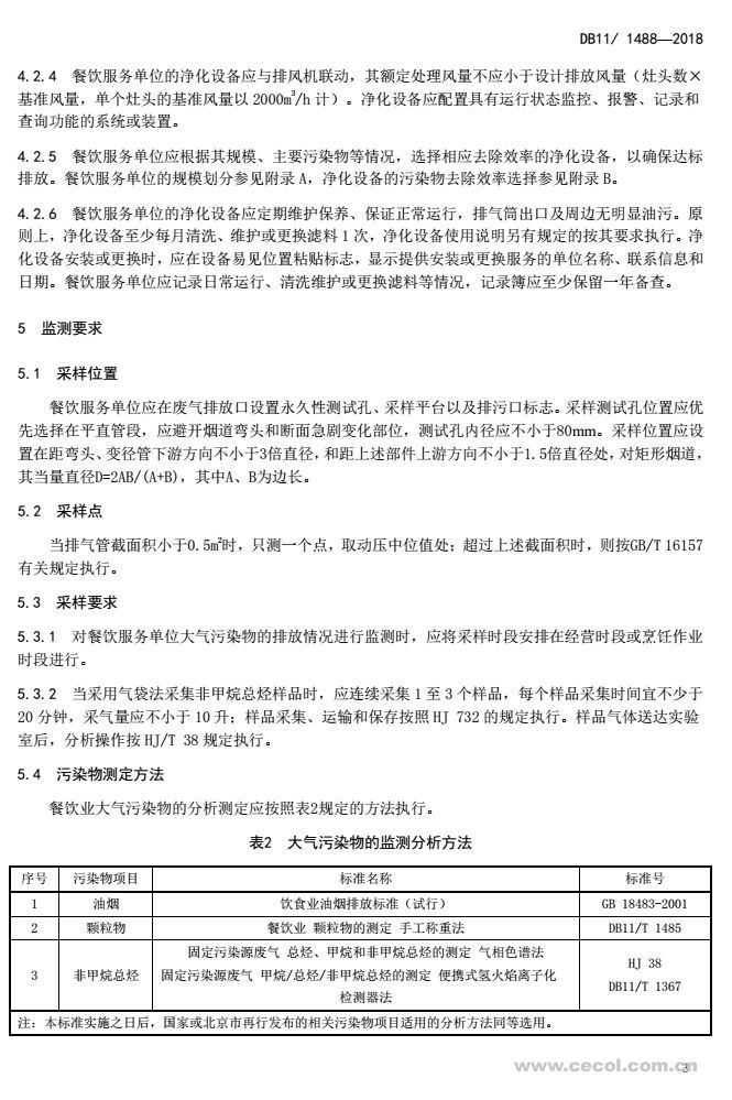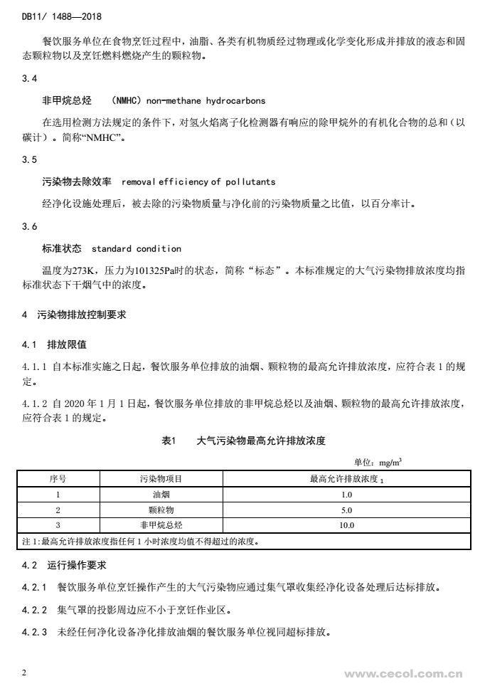 隨著社會經濟的發展和居民生活水平的提高,北京市餐飲業發展迅速,餐飲企業數量不斷增加、規模不斷擴大,餐飲業在烹飪過程中所產生的污染物排放也在不斷增加。為控制北京市餐飲業的大氣污染物排放,改善城市區域環境質量,引導和促進餐飲業污染治理技術進步,2018年1月8日,北京市制定并發布《餐飲業大氣污染物排放標準》(DB11/ 1488-2018)(以下簡稱“標準”)。